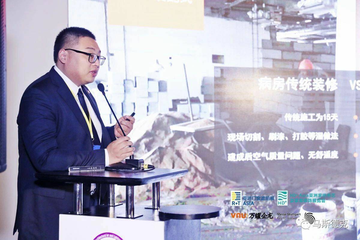 此次兰州天佑智能制造技术有限公司受邀参与了展会同期举行的 “当建筑邂逅光-医院建筑艺术与光环境” 论坛,由兰州天佑智能制造技术有限公司市场部总监——周博一先生为现场带来以 “装配式绿色医院环境集成化建设——兰州天佑智能制造技术有限公司医疗空间整体解决方案” 为题的精彩演说。